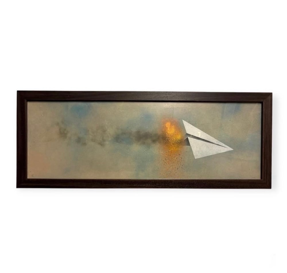 Stencil on board. 85x32cm (inc frame)