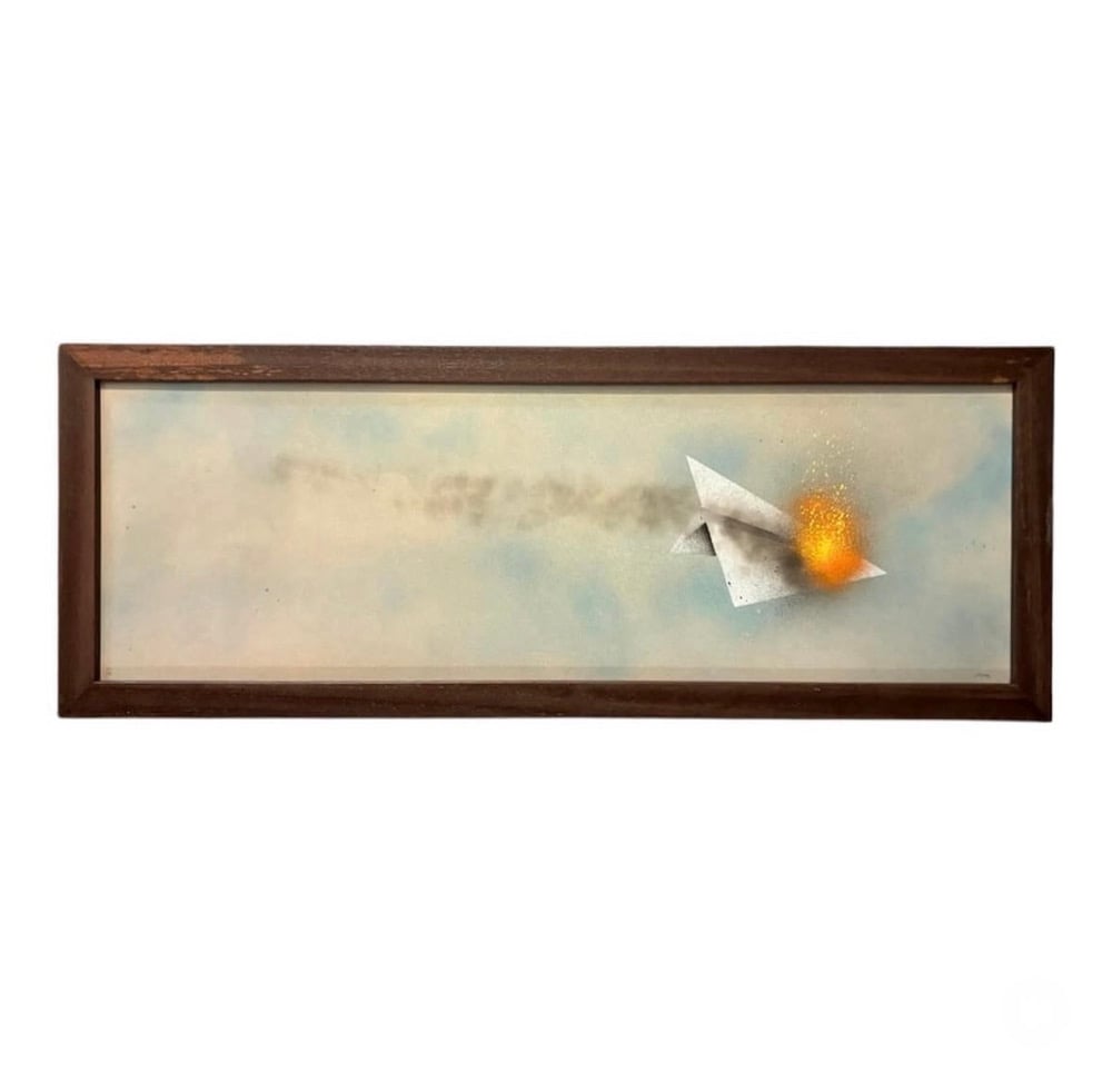 Stencil on board. 85x32cm (inc frame).